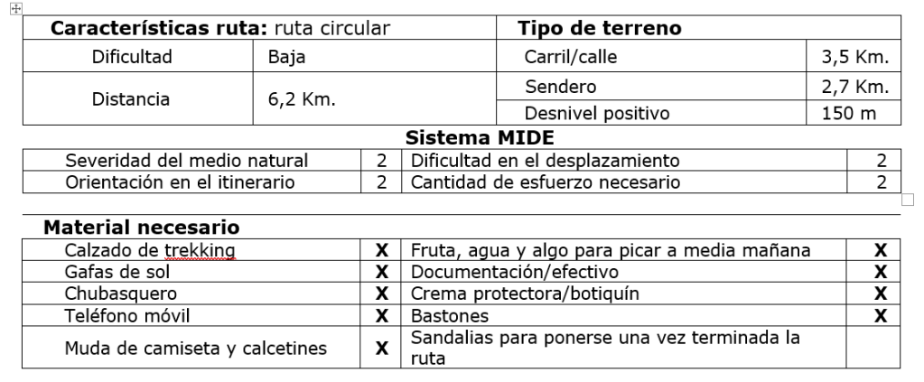 Seguro: Es necesario suscribir un seguro para todas aquellas personas que no estén federadas y no tengan un seguro de accidentes de senderismo. La organización se encargará de tramitarlo para las personas que no lo tengan de modo gratuito. Sin estar asegurados no se podrá participar en esta ruta.
