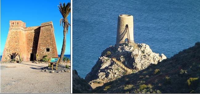Después tomaremos un carril de tierra que nos lleva, en primer lugar, a la torre del Pirulico, también llamado atalaya del Peñón o torre de los Diablos. Es una atalaya o torre de vigilancia costera nazarí, construida entre los siglos XII y XIV y que se seguiría usando como torre de vigilancia durante el siglo XVI. Fue restaurada el año 2009.