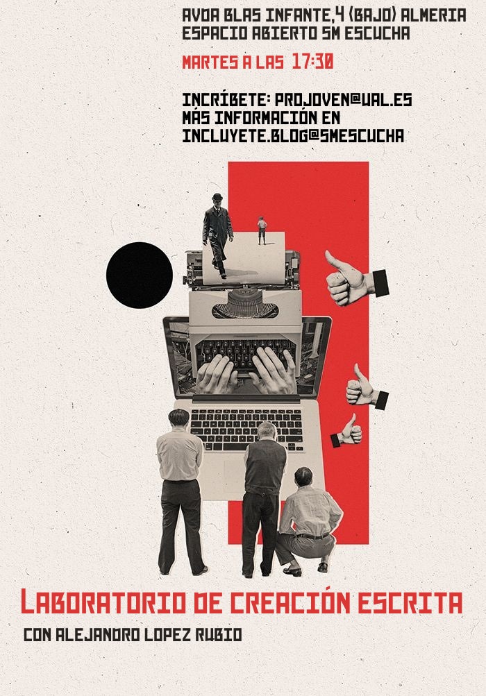 Tanto si ya has intentado escribir, pero te gustaría mejorar, como si nunca lo has hecho y quieres probar, apúntate a nuestro Laboratorio de Creación Escrita impartido por el escritor almeriense Alejandro López Rubio.