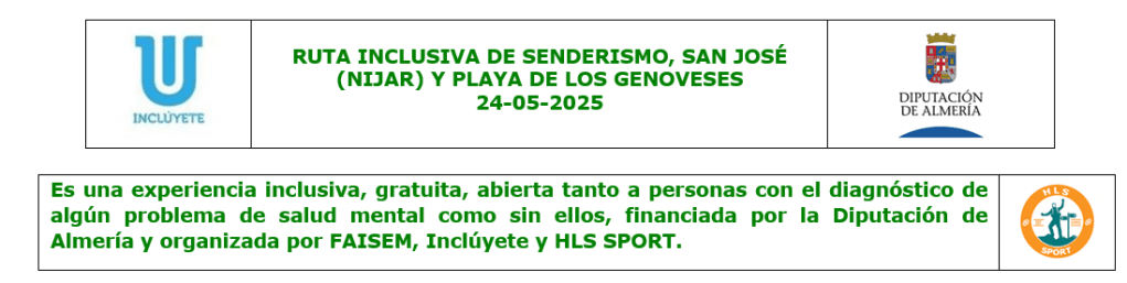 Transporte: El desplazamiento lo haremos en un autobús puesto a nuestra disposición por la Diputación de Almería y HLS SPORT.